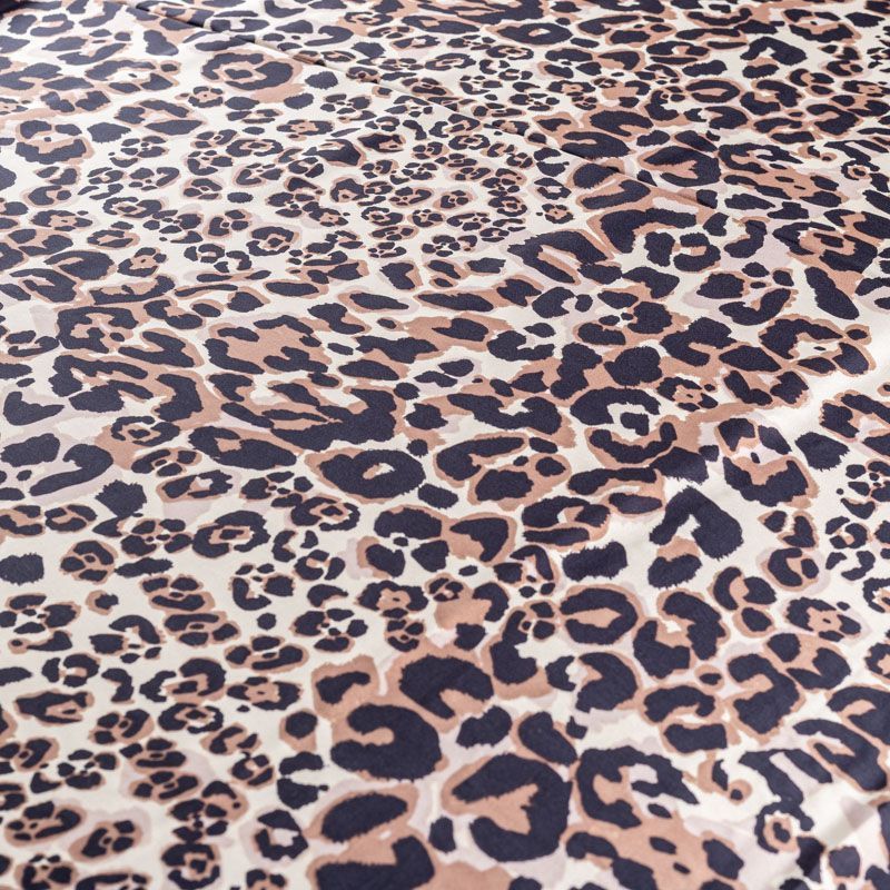 Итальянский крепдешин с матовой лицевой поверхностью с "хищным" принтом на молочном фоне, тонкий, слегка прозрачный, отлично драпируется, легкий и струящийся. Идеально подойдет для пошива платьев и сарафанов свободных силуэтов, с воланами, летящих юбок, топов, блузки, костюма в пижамном стиле.