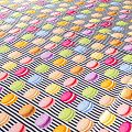 Итальянский крепдешин с матовой лицевой поверхностью с "вкусным" ярким принтом на полосатом фоне, тонкий, слегка прозрачный, отлично драпируется, не много тянется за счет эластана в составе, легкий и струящийся. Идеально подойдет для пошива платьев и сарафанов расклешенных моделей, с воланами, летящих юбок, топов, блузки, костюма в пижамном стиле.