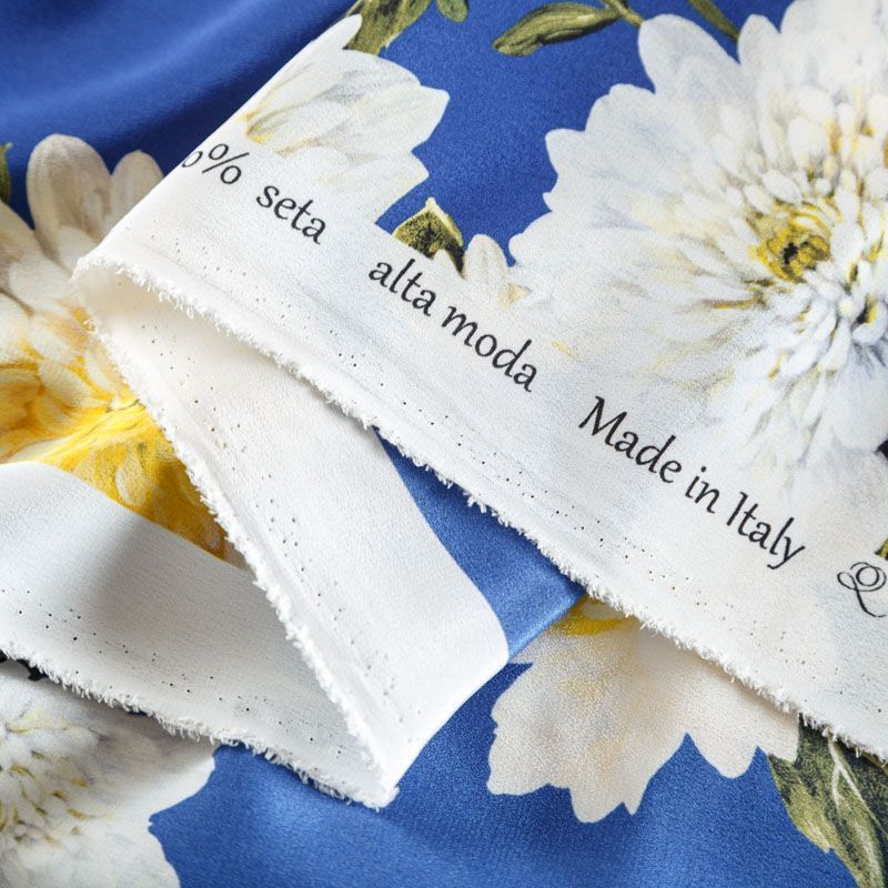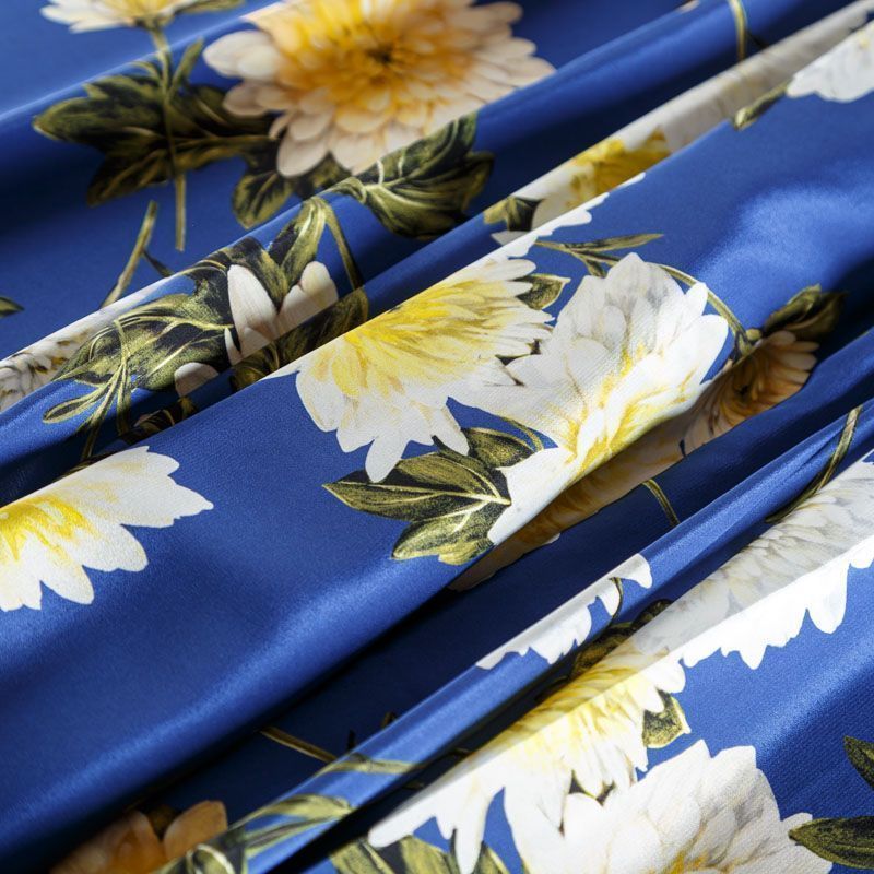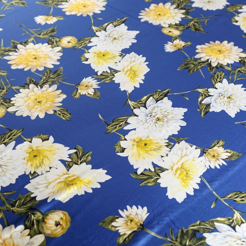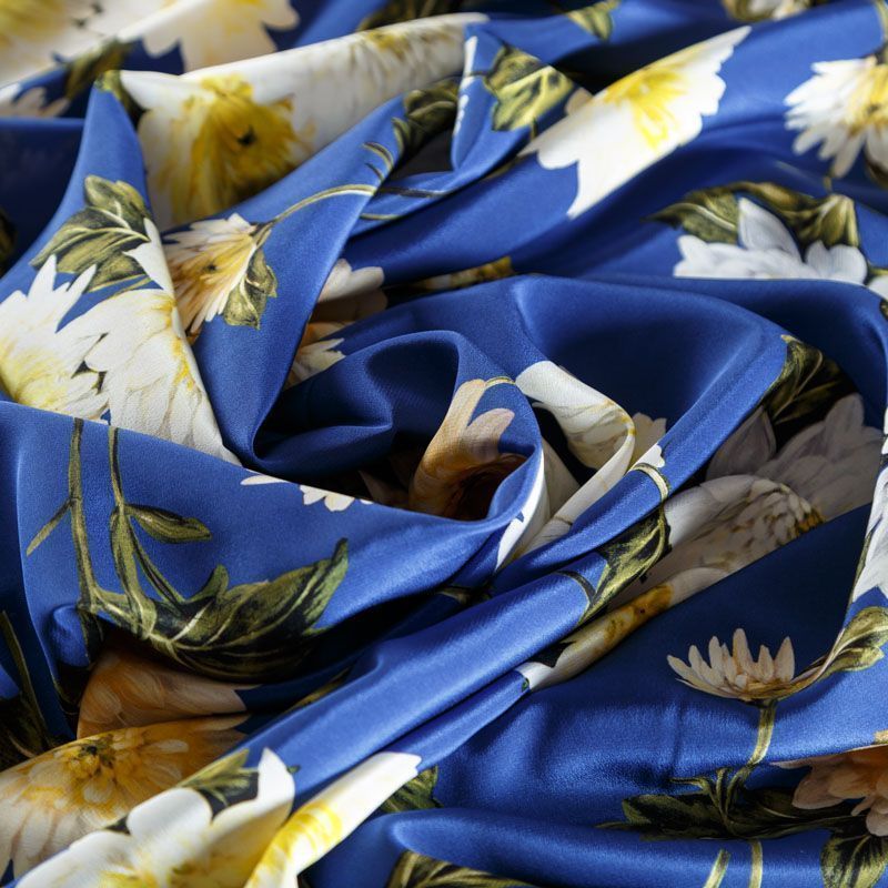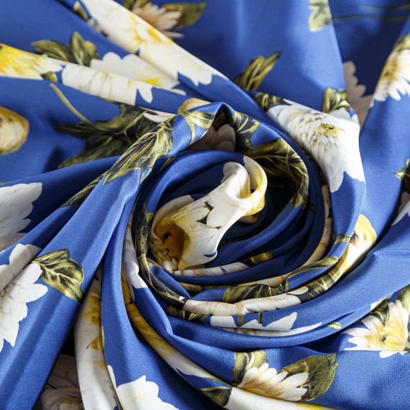 Крепдешин натуральный К15-003 синий принтованный в Норильске