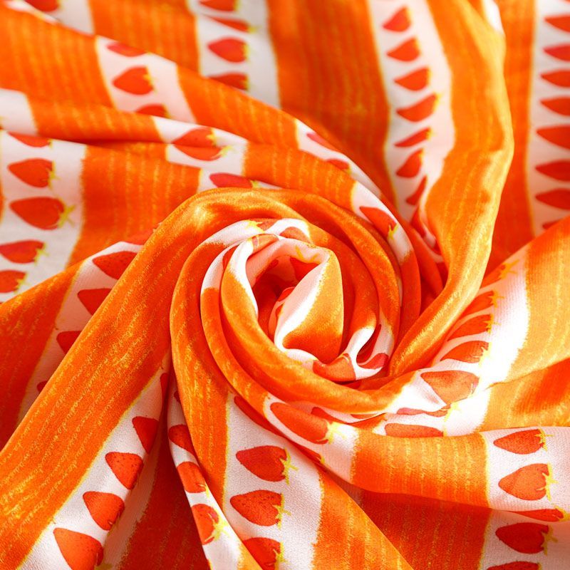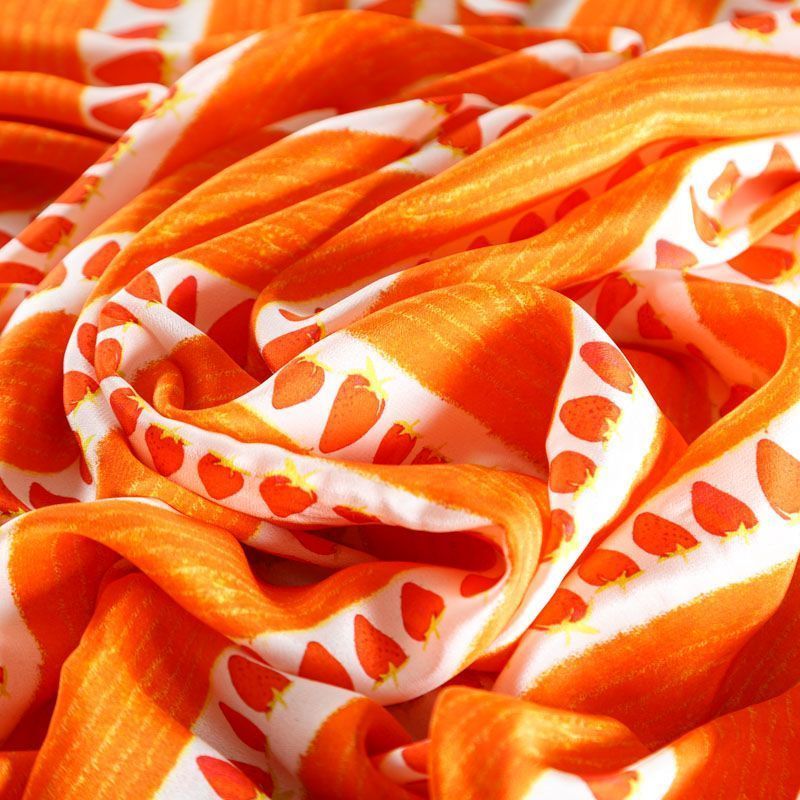 Крепдешин натуральный К15-061 апельсиновый принтованный