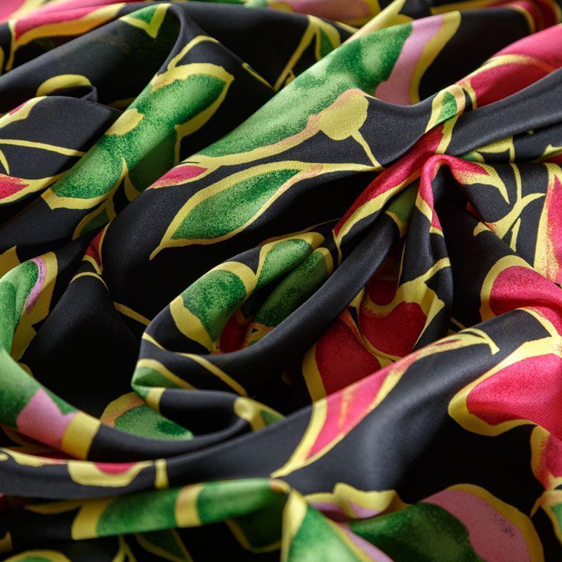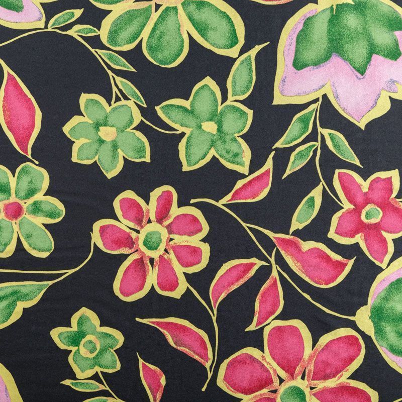 Итальянский крепдешин с матовой лицевой поверхностью со стилизованным акварельным цветочным принтом, тонкий, слегка прозрачный, отлично драпируется, легкий и струящийся. Идеально подойдет для пошива платьев и сарафанов расклешенных моделей, с воланами, летящих юбок, топов, блузки, костюма в пижамном стиле.