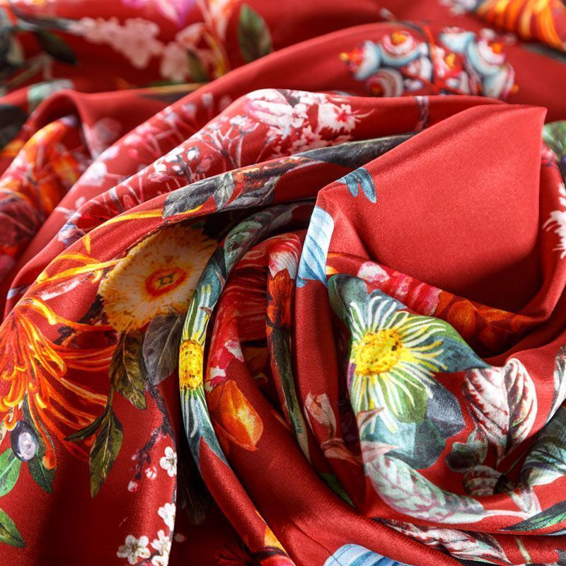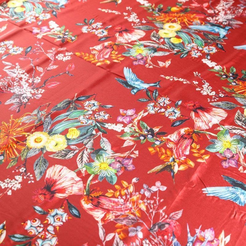 Крепдешин натуральный К24-040 красный принтованный в Норильске