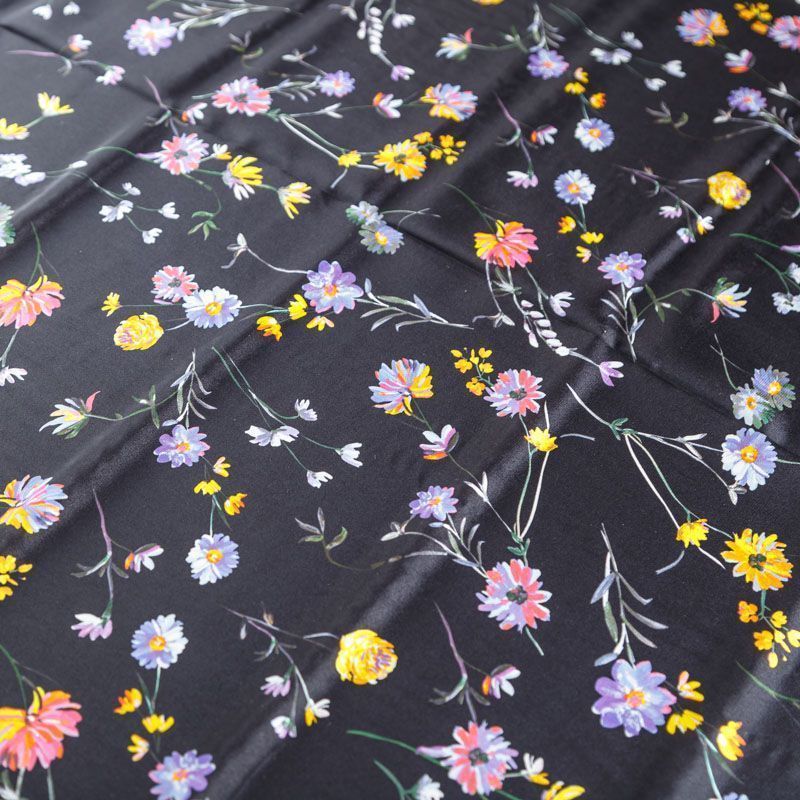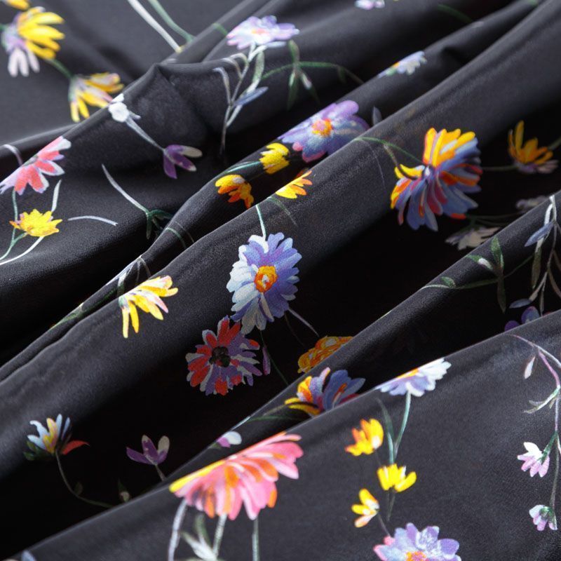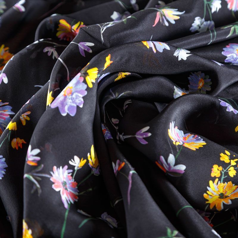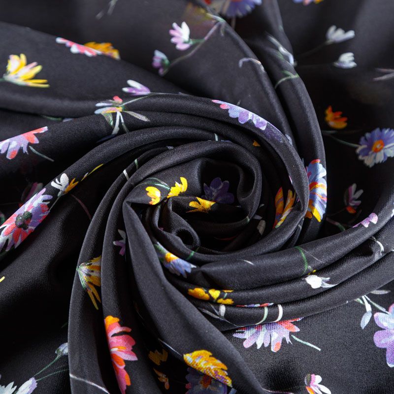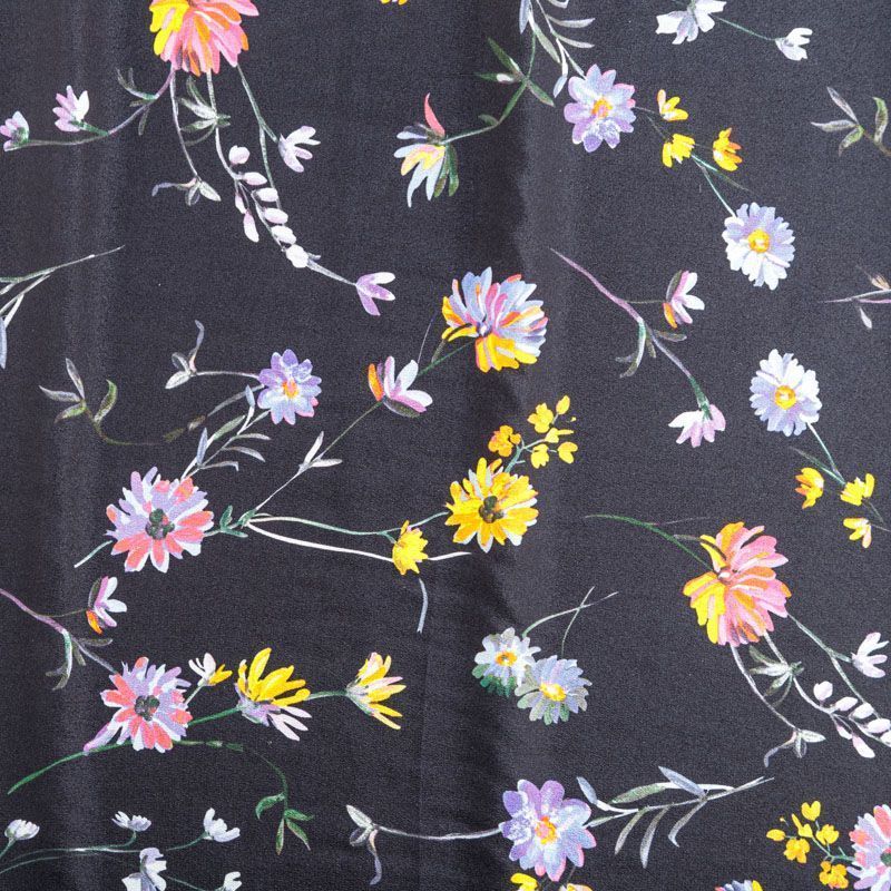 Крепдешин натуральный К24-042 черный принтованный в Норильске