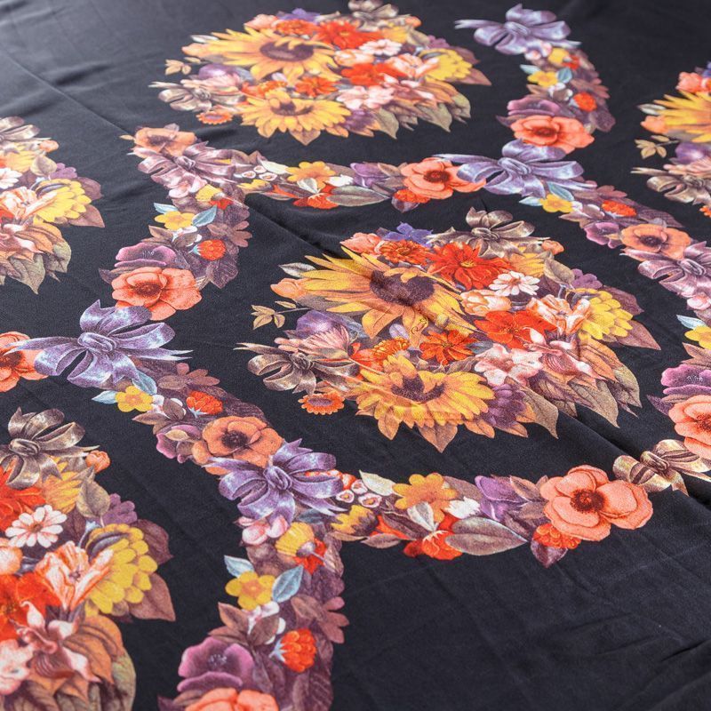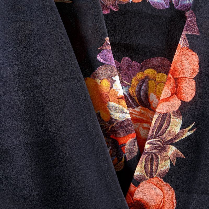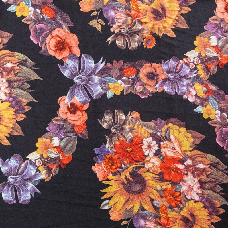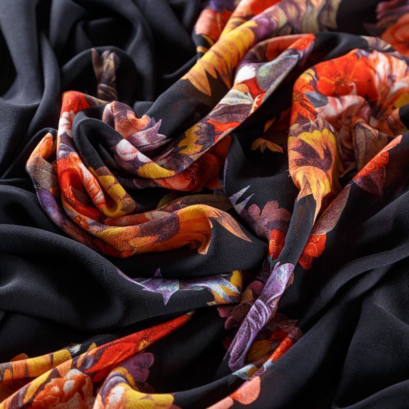 Крепдешин натуральный К29-785 черный принтованный в Норильске