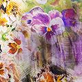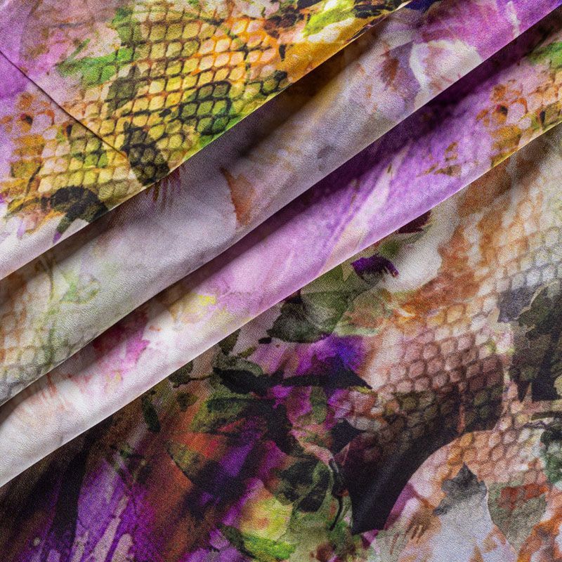 Крепдешин натуральный К2-0030 фиолетовый принтованный
