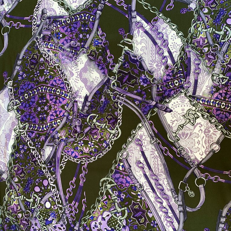 Крепдешин натуральный К32-231 болотно-зеленый принтованный