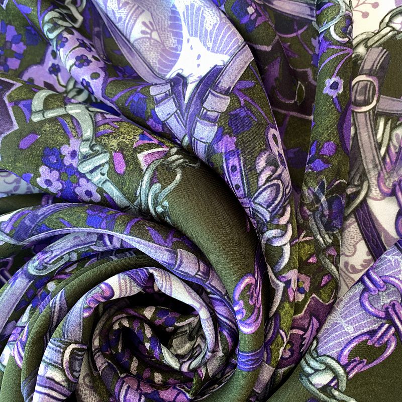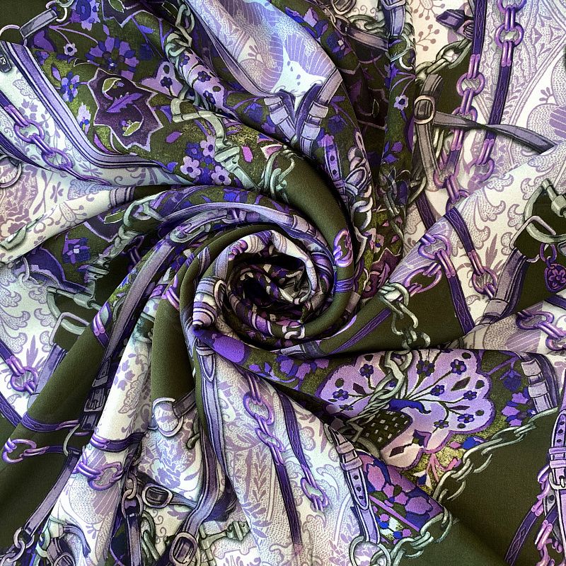 Крепдешин натуральный К32-231 болотно-зеленый принтованный в Норильске