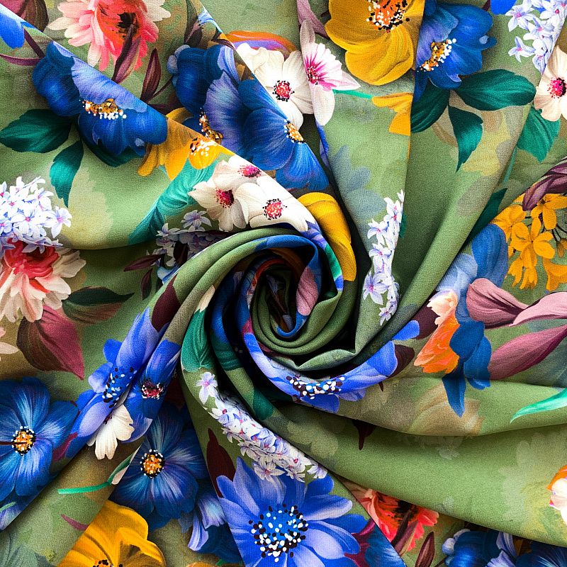 Крепдешин натуральный К32-240 травяная зелень принтованный в Норильске