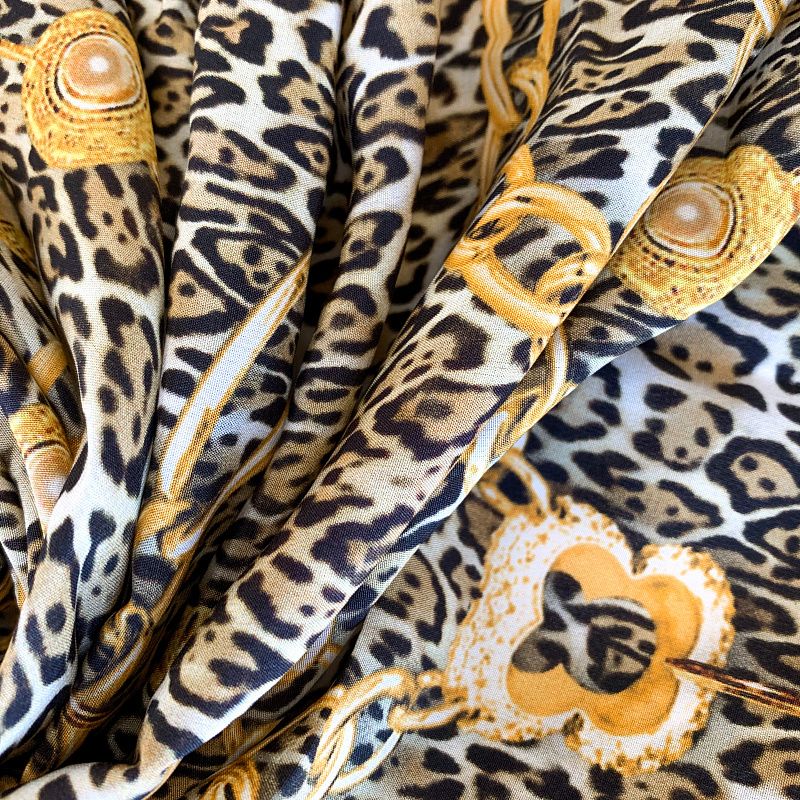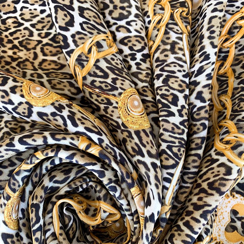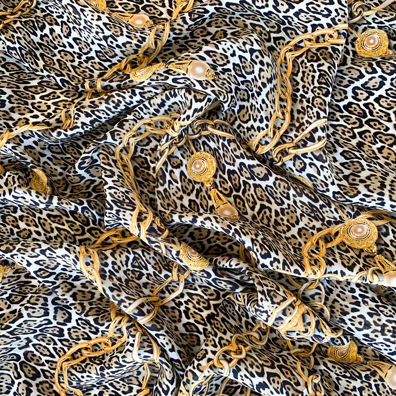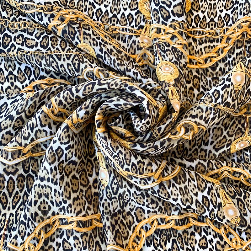 Крепдешин натуральный К32-243 бежево-серый принтованный