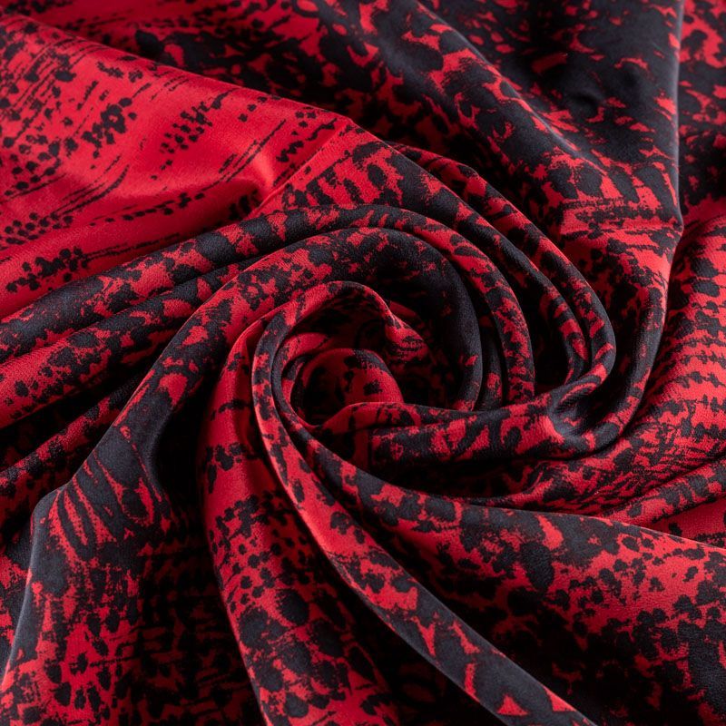 Крепдешин натуральный К32-249 малиново-красный принтованный в Норильске