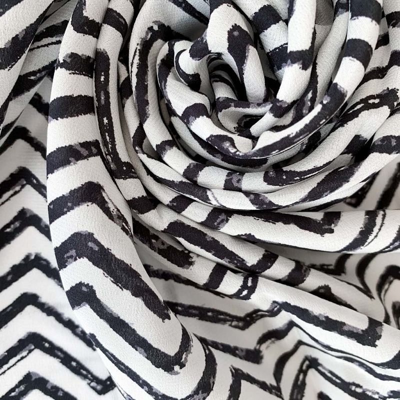 Крепдешин натуральный К32-378 молочный принтованный в Норильске