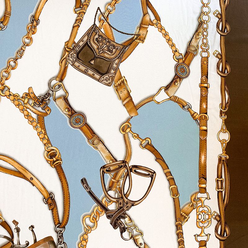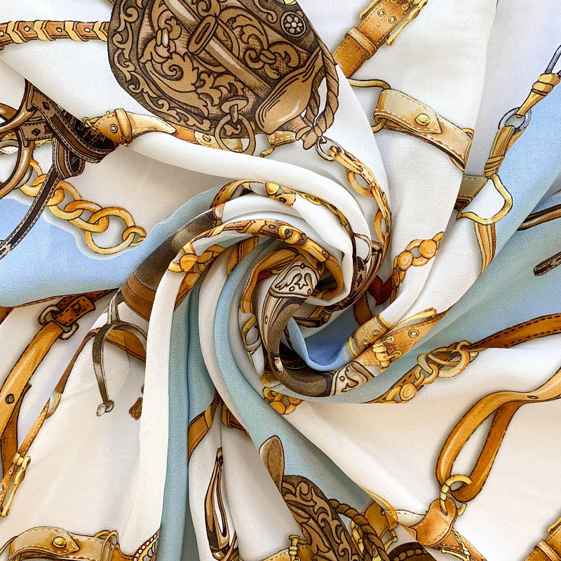 Крепдешин натуральный К32-381 молочно-голубой принтованный