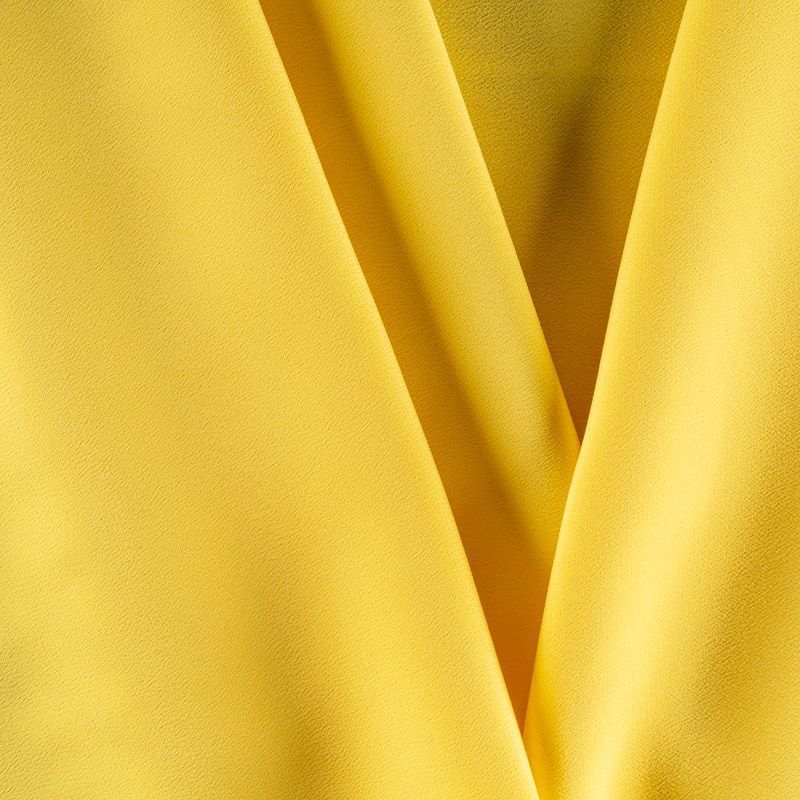 Шелковый крепдешин канареечного желтого цвета, тонкий, легкий, фактурный, приятный на ощупь. Ткань слегка просвечивает, можно использовать подклад. Прекрасно будет смотреться в платье, юбке, тунике, рубашке или блузке.