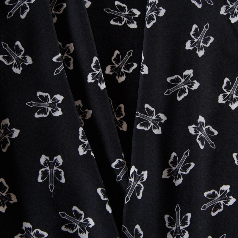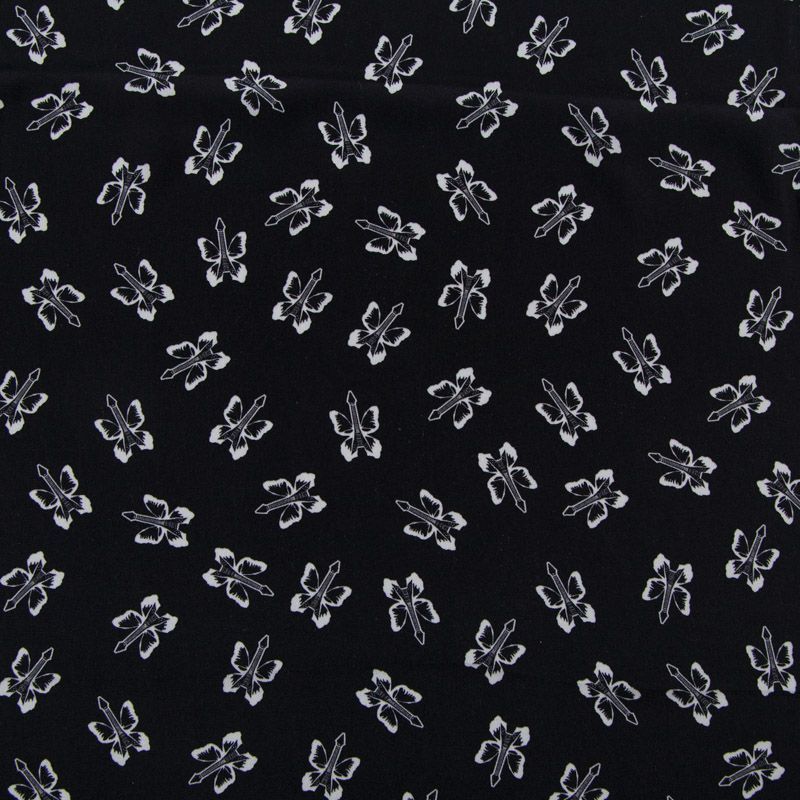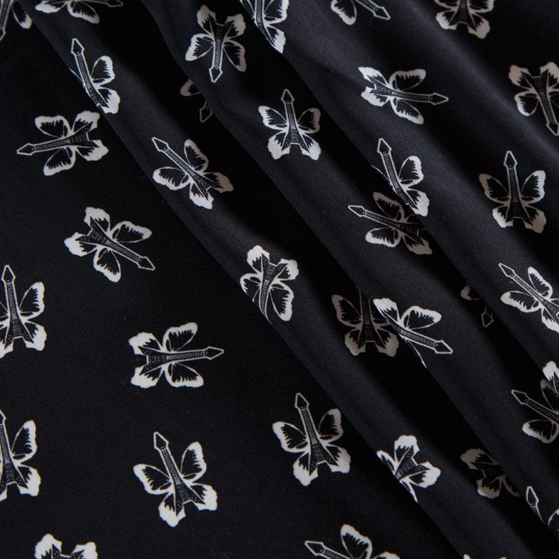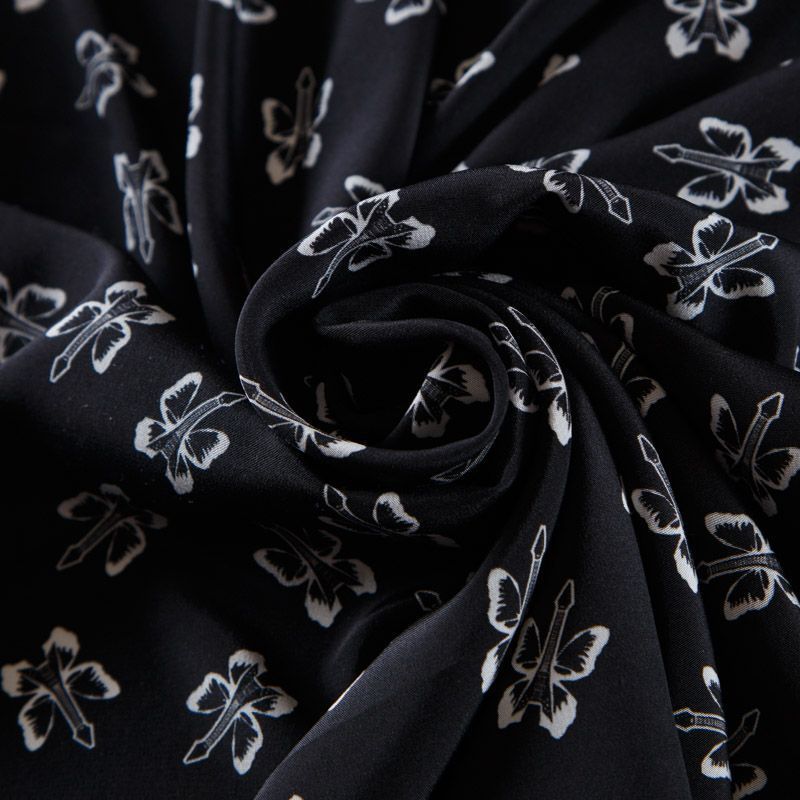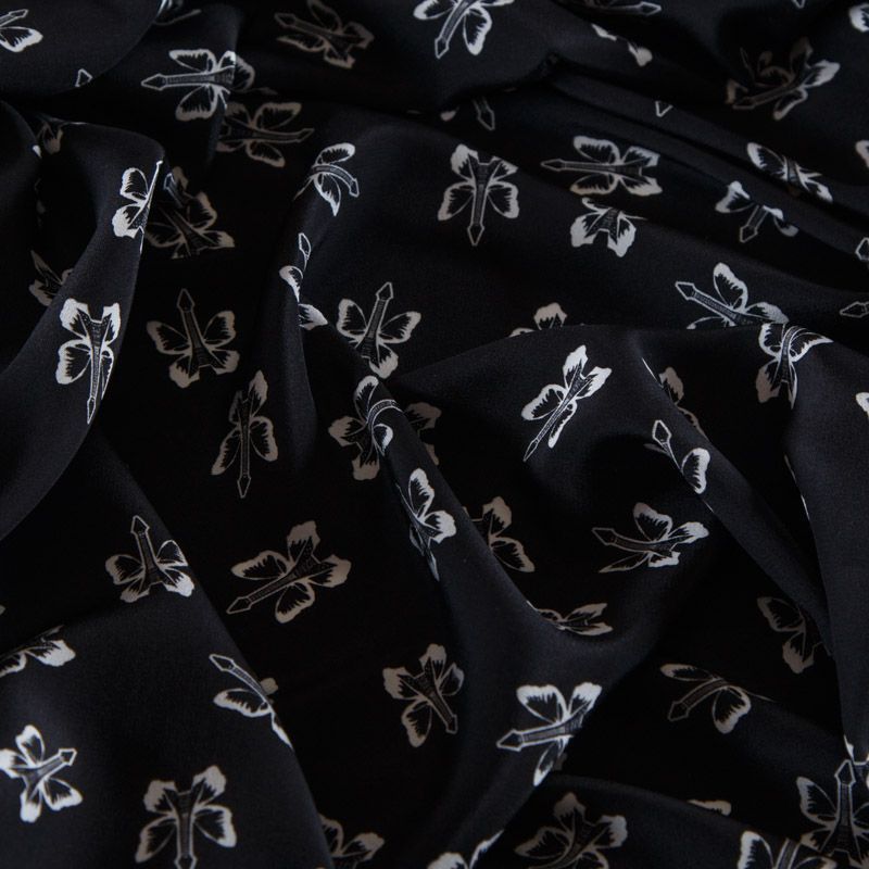 Крепдешин шелковый 028-12507 черный принтованный