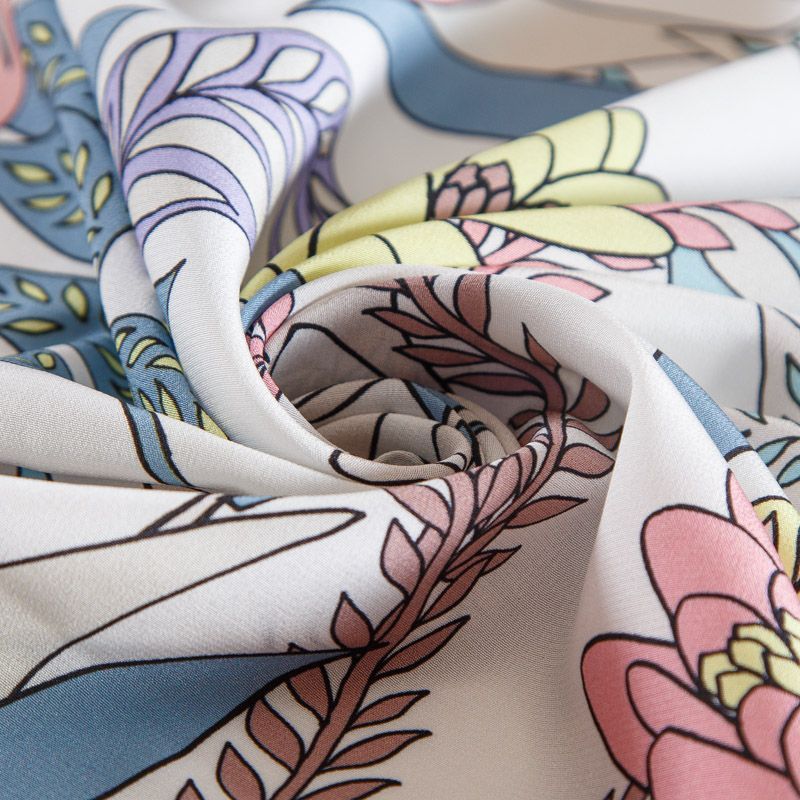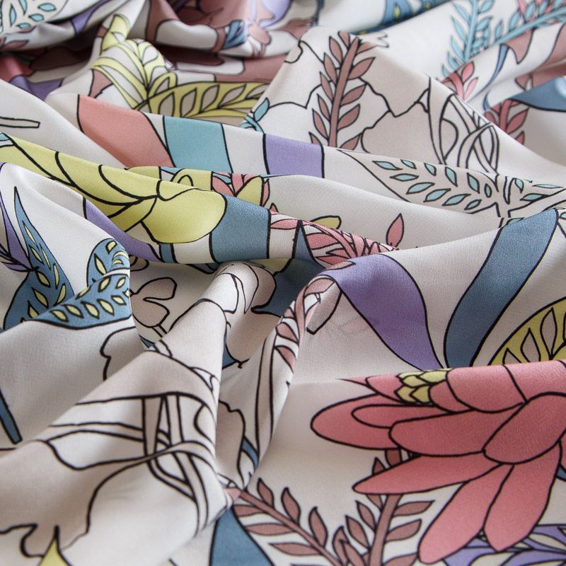 Крепдешин шелковый 028-14709 айвори принтованный в Норильске
