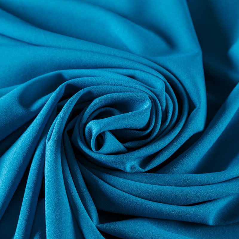 Крепдешин темно-бирюзового оттенка, тонкий, легкий, фактурный, приятный на ощупь. Очень пластичный, тянется за счет эластана в составе, прекрасно драпируется и струится. Ткань слегка просвечивает, можно использовать подклад. Идеально будет смотреться в платье, юбке, тунике, рубашке или блузке.
