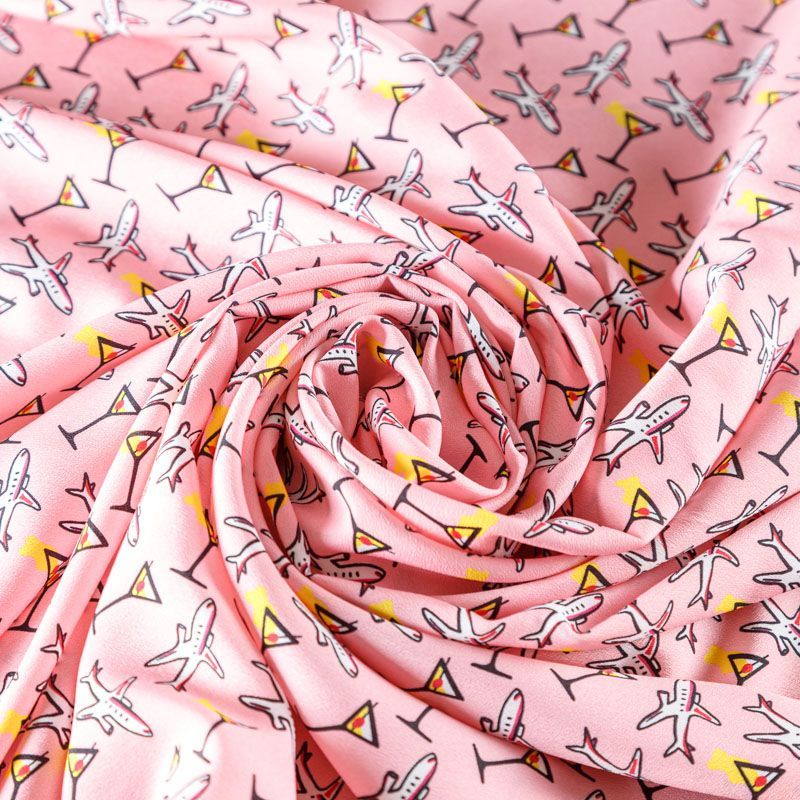 Крепдешин синтетический 029-08062 розовый принтованный в Норильске