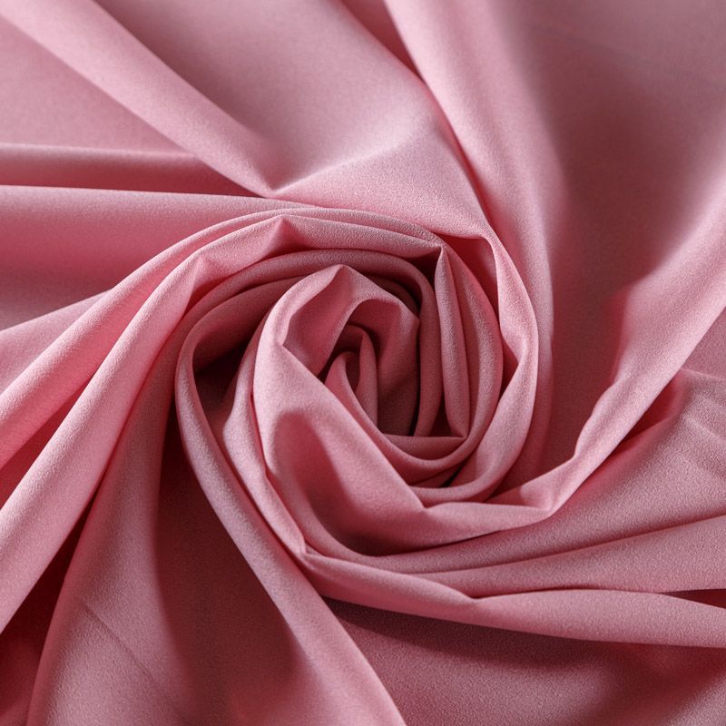 Крепдешин розового оттенка, тонкий, легкий, фактурный, приятный на ощупь. Очень пластичный, тянется за счет эластана в составе, прекрасно драпируется и струится. Ткань слегка просвечивает, можно использовать подклад. Идеально будет смотреться в платье, юбке, тунике, рубашке или блузке.