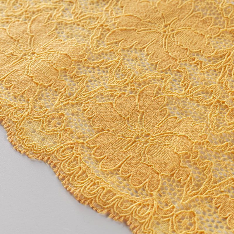 Эластичное кружево сочетает в себе мягкость, прочность и красоту, благодаря своей упругости оно долго не теряет первоначальную форму. Используется для пошива нижнего белья, а так же применяется как отделочный декор в одежде.