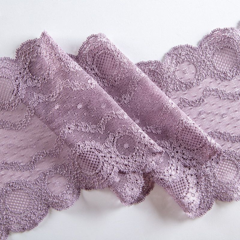 Эластичное кружево сочетает в себе мягкость, прочность и красоту, благодаря своей упругости оно долго не теряет первоначальную форму. Используется для пошива нижнего белья, а так же применяется как отделочный декор в одежде.