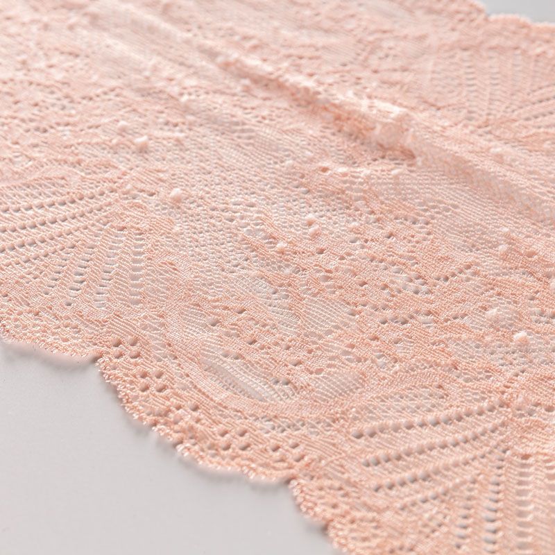 Эластичное кружево сочетает в себе мягкость, прочность и красоту, благодаря своей упругости оно долго не теряет первоначальную форму. Используется для пошива нижнего белья, а так же применяется как отделочный декор в одежде.