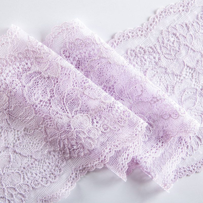Эластичное кружево сочетает в себе мягкость, прочность и красоту, благодаря своей упругости оно долго не теряет первоначальную форму. Используется для пошива нижнего белья, а так же применяется как отделочный декор в одежде.