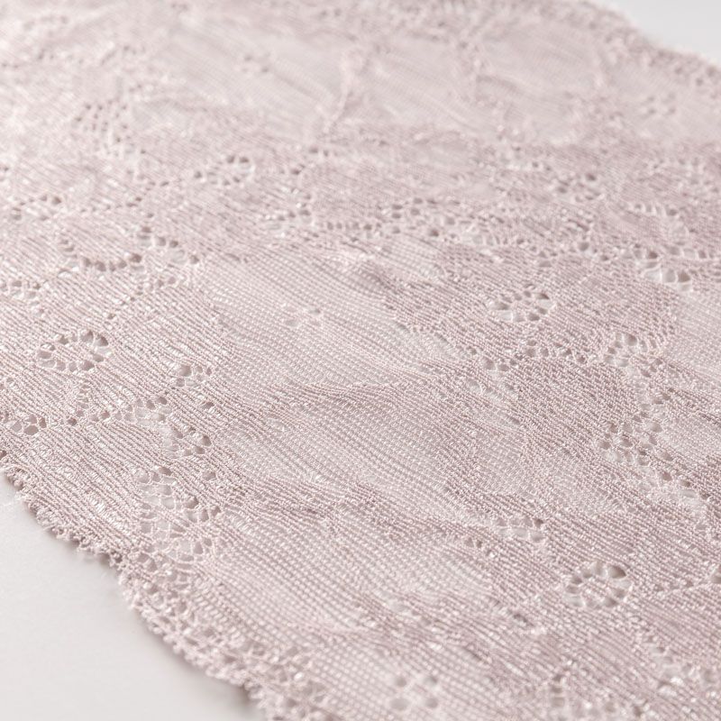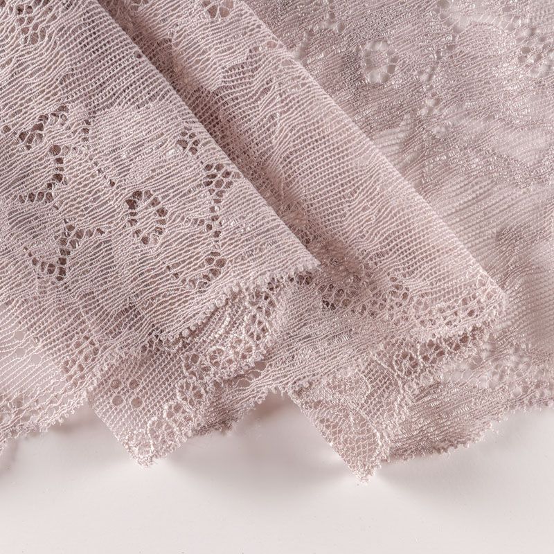 Эластичное кружево сочетает в себе мягкость, прочность и красоту, благодаря своей упругости оно долго не теряет первоначальную форму. Используется для пошива нижнего белья, а так же применяется как отделочный декор в одежде.