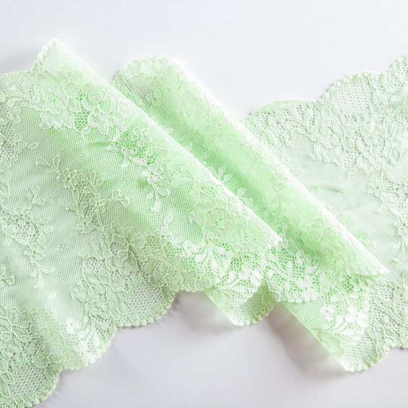 Эластичное кружево сочетает в себе мягкость, прочность и красоту, благодаря своей упругости оно долго не теряет первоначальную форму. Используется для пошива нижнего белья, а так же применяется как отделочный декор в одежде.