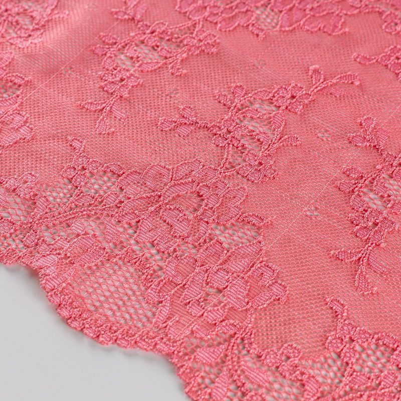Эластичное кружево сочетает в себе мягкость, прочность и красоту, благодаря своей упругости оно долго не теряет первоначальную форму. Используется для пошива нижнего белья, а так же применяется как отделочный декор в одежде.