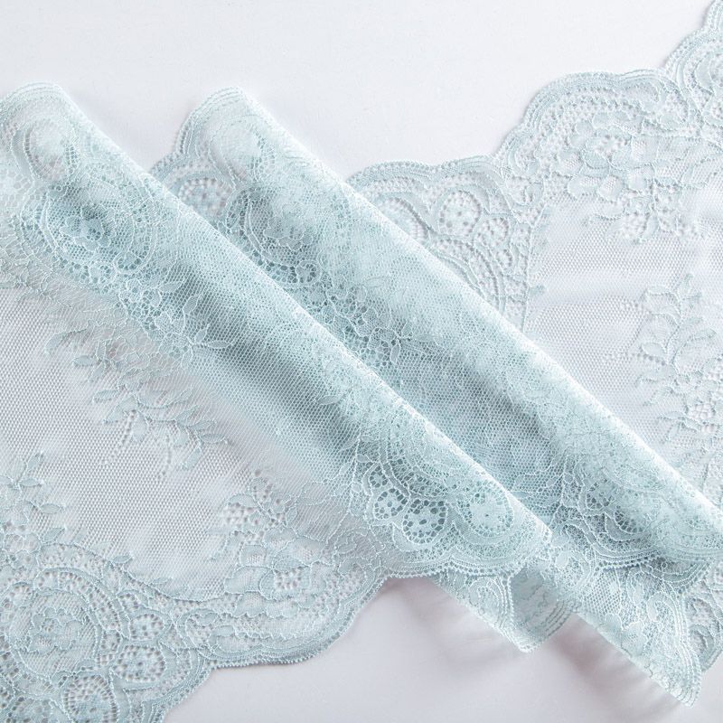 Эластичное кружево сочетает в себе мягкость, прочность и красоту, благодаря своей упругости оно долго не теряет первоначальную форму. Используется для пошива нижнего белья, а так же применяется как отделочный декор в одежде.