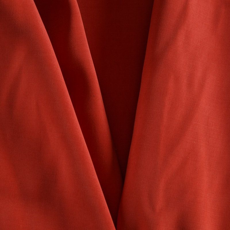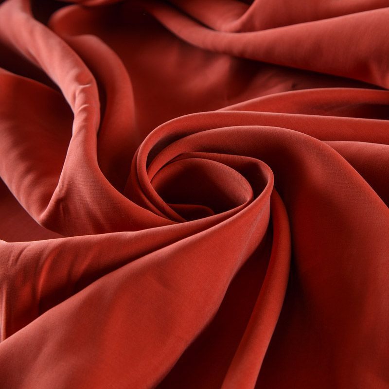 Итальянская купро плательно-костюмной плотности терракотового оттенка. Ткань мягкая, пластичная, струящаяся, отлично драпируется, не просвечивает. Поверхность ткани бархатистая, похожа на мокрый шелк. Идеально подойдет для платьев свободного силуэта, брюк-палацио, юбок, шорт, туник, платья-рубашки, блузы.