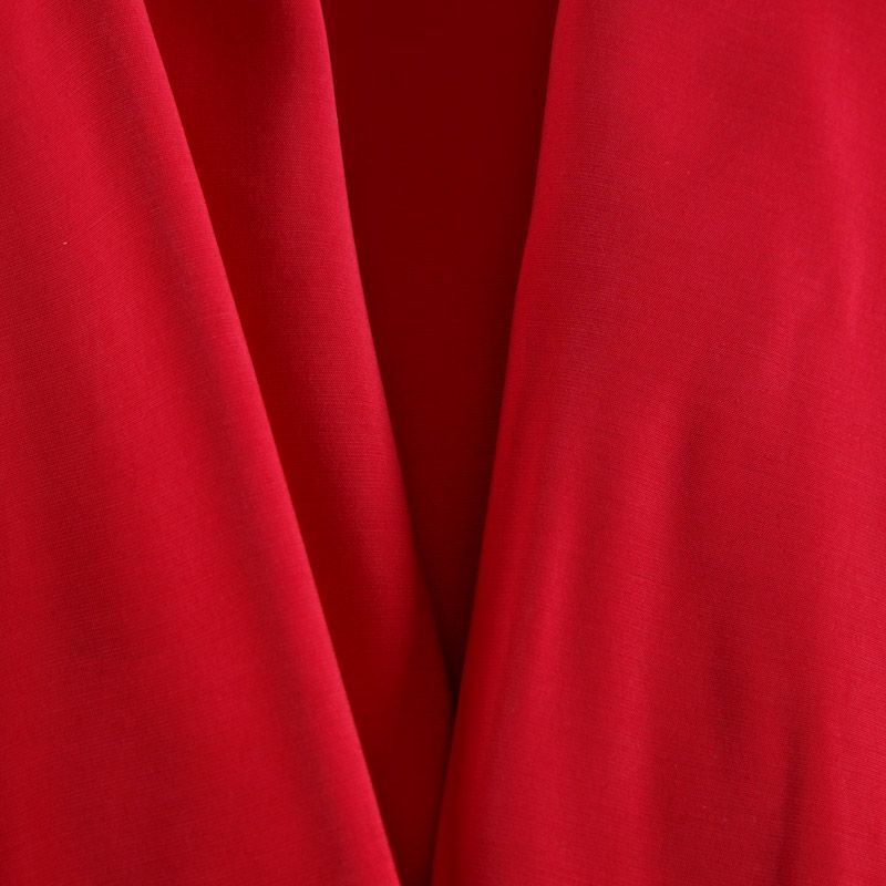 Итальянская купро плательно-костюмной плотности красного оттенка. Ткань мягкая, пластичная, струящаяся, отлично драпируется, не просвечивает. Поверхность ткани бархатистая, похожа на мокрый шелк. Идеально подойдет для платьев свободного силуэта, брюк-палацио, юбок, шорт, туник, платья-рубашки, блузы.