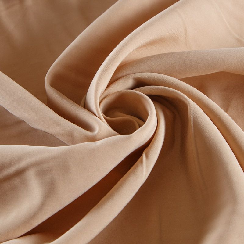 Итальянская купро плательно-костюмной плотности бежевого оттенка. Ткань мягкая, пластичная, струящаяся, отлично драпируется, не просвечивает. Поверхность ткани бархатистая, похожа на мокрый шелк. Идеально подойдет для платьев свободного силуэта, брюк-палацио, юбок, шорт, туник, платья-рубашки, блузы.