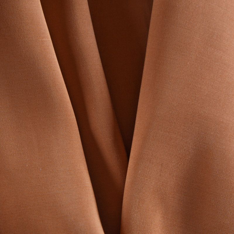 Итальянская купро плательно-костюмной плотности коричневого оттенка. Ткань мягкая, пластичная, струящаяся, отлично драпируется, не просвечивает. Поверхность ткани бархатистая, похожа на мокрый шелк. Идеально подойдет для платьев свободного силуэта, брюк-палацио, юбок, шорт, туник, платья-рубашки, блузы.