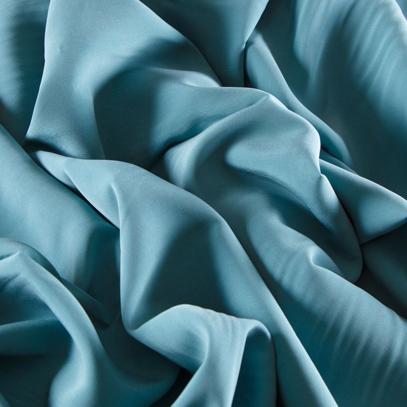 Итальянская купро плательно-костюмной плотности мятно-бирюзового оттенка. Ткань мягкая, пластичная, струящаяся, отлично драпируется, не просвечивает. Поверхность ткани бархатистая, похожа на мокрый шелк. Идеально подойдет для платьев свободного силуэта, брюк-палацио, юбок, шорт, туник, платья-рубашки, блузы.