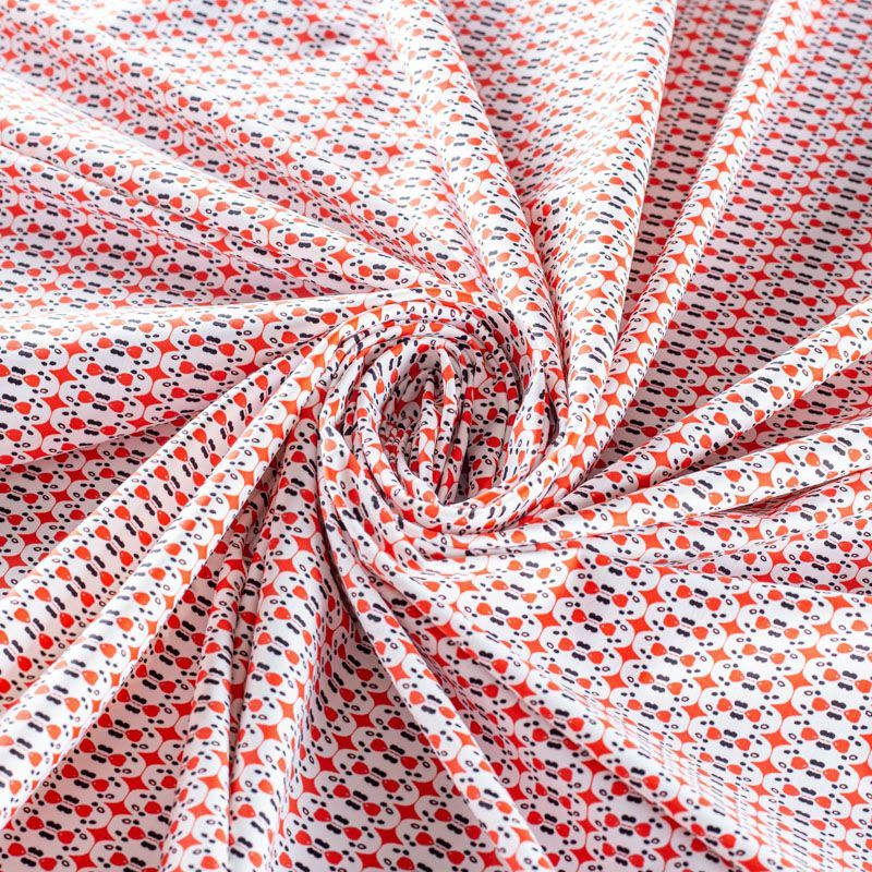 Итальянский бифлекс с мелким повторяющимся этническим узором. Поверхность ткани матовая и гладкая. Отлично тянется, одежда из него не сковывает движения. Хорошо впитывает влагу и быстро высыхает, не вызывет аллергии и раздражения. Используется для пошива эстрадных, спортивных костюмов, купальников, боди.