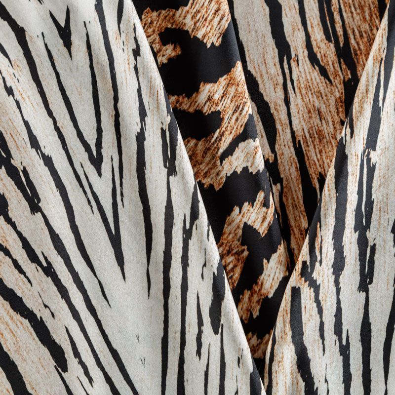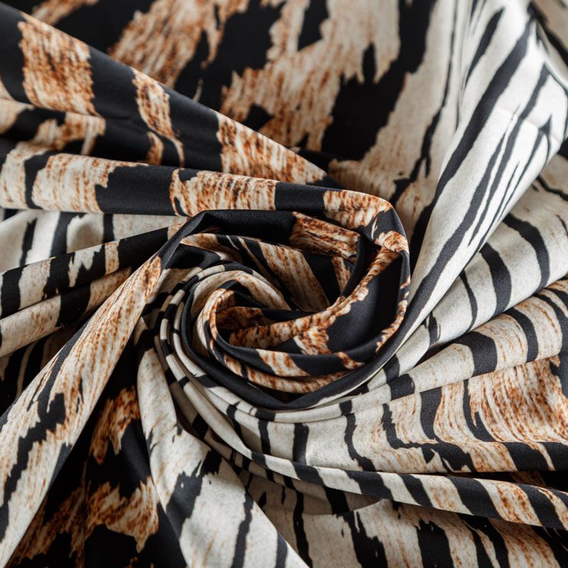 Итальяская качественная, красивая и приятная на ощупь лайкра молочного оттенка с модным анималистическим принтом. Поверхность ткани матовая, гладкая.  Идеально облегает фигуру, тянется по двум направлениям, хорошо драпируется, отлично держит форму, устойчива к пилингу, долговечна и гигроскопична. Используется для пошива одежды для танцев, гимнастики, фигурного катания, для велоспорта, легкой атлетики и аэробики, фитнеса и других видов спорта, для купальников, женского белья, театральных, цирковых и эстрадных костюмов.