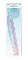На лекале нанесена разметка: - 6, 12, 15 мм вдоль скругленной стороны, что позволяет проводить плавные линии и измерять скругленные участки; - 4, 6, 8 мм для создания ровных и длинных линий; - углы от 30° до 90° для построения угла нужного размера на выкройке. Метрическая система измерений: см и мм.