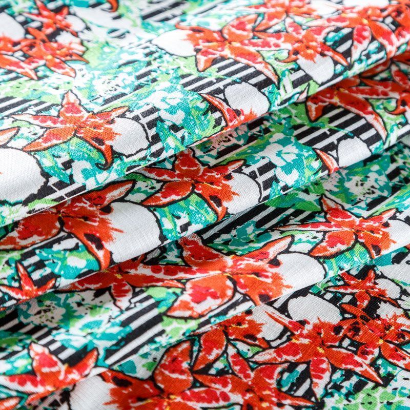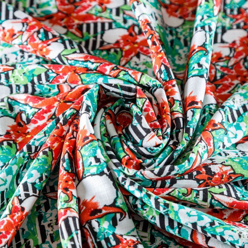 Лен искусственный 035-07867 зеленый принтованный