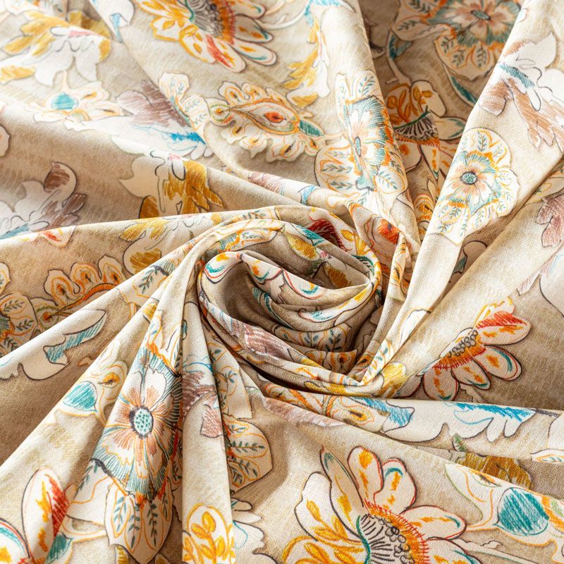 Льняная плательно-рубашечная ткань с добавлением бемерии в песочном оттенке с растительным принтом, выполненным в карандашной технике Материал прочный, с выразительной матовой рельефной поверхностью, полотняным плетением, хорошо держит форму, мягкий на ощупь, пластичный, отлично драпируется. Прекрасно подойдет для пошива летних платьев, сарафанов, юбок, рубашек, брюк и шорт.