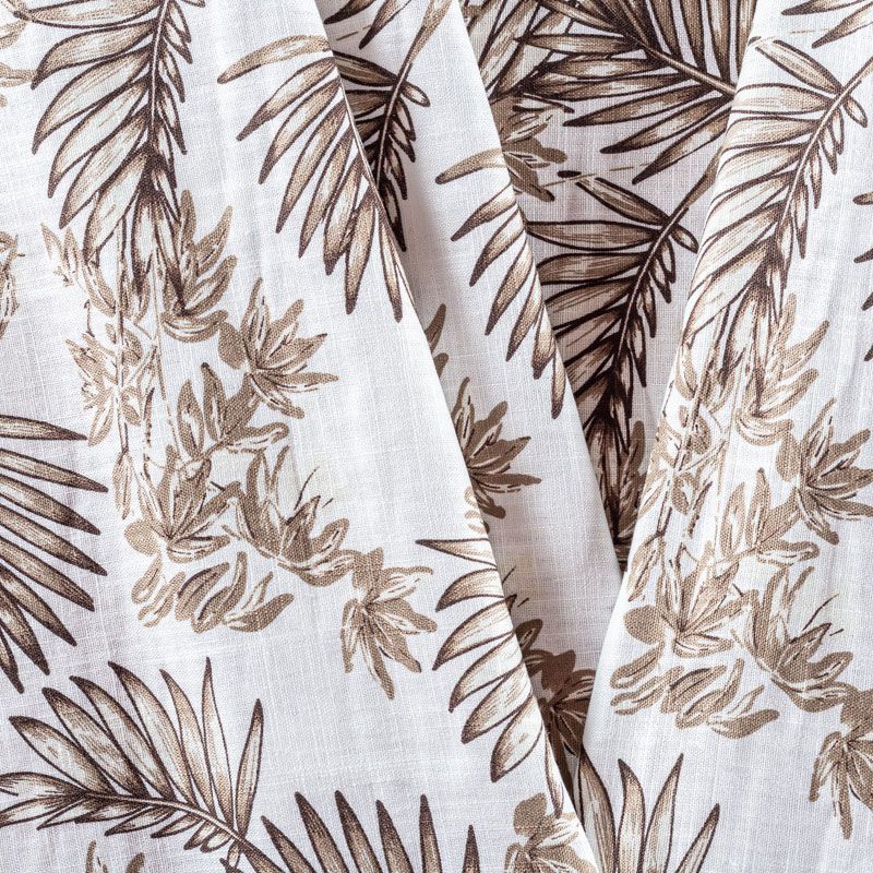 Льняная плательная ткань с добавлением вискозы белого цвета с монохромным растительным принтом. Материал прочный, с выразительной матовой рельефной поверхностью, полотняным плетением, хорошо держит форму, мягкий на ощупь, пластичный, отлично драпируется. Прекрасно подойдет для пошива летних платьев, сарафанов, юбок, рубашек, брюк и шорт.