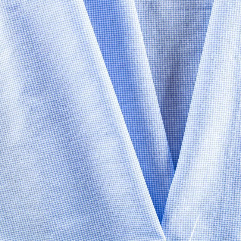 Льняная плательная ткань с добавлением хлопка и полиэстера голубого оттенка в мелкую клеточку. Материал прочный, с выразительной матовой рельефной поверхностью, полотняным плетением, хорошо держит форму, мягкий на ощупь, пластичный, отлично драпируется. Прекрасно подойдет для пошива летних платьев, сарафанов, юбок, рубашек, брюк и шорт.