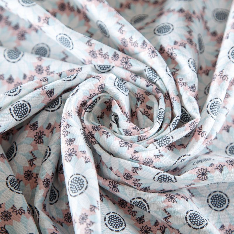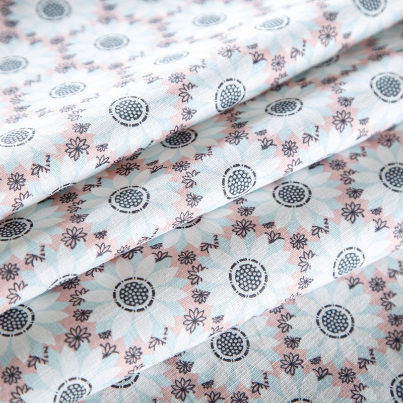Лен натуральный 035-07870 выбеленный голубой принтованный в Норильске