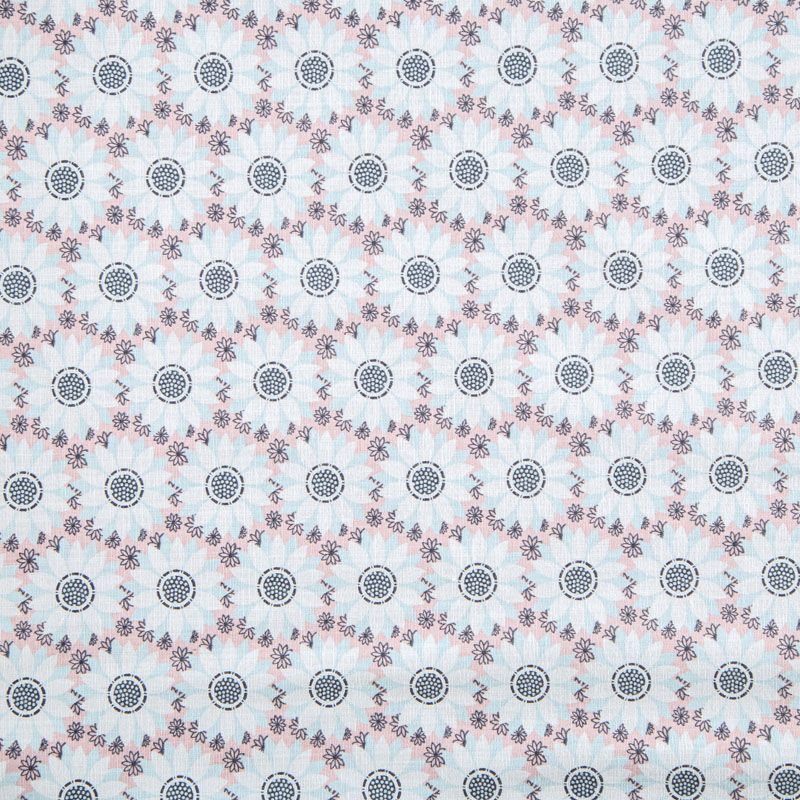 Лен натуральный 035-07870 выбеленный голубой принтованный