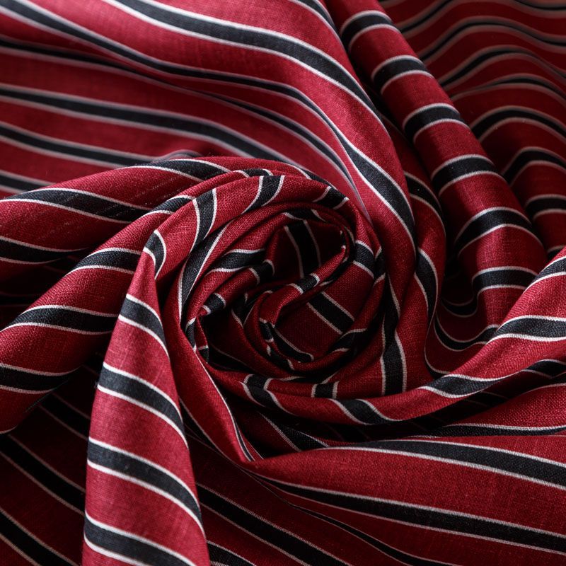 Итальянский костюмно-плательный лен в бордовом оттенке в черно-белую вертикальную полоску. Ткань прочная, имееет на ощупь приятную, гладкую поверхность, а визуально - выраженный рельеф и полотняное переплетение, держит форму, пластичная. Подойдет для пошива костюмов, брюк, шорт, юбок, платьев, сарафанов, топов, комбинезонов, жакетов, кардиганов.