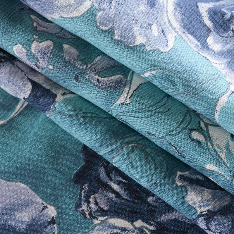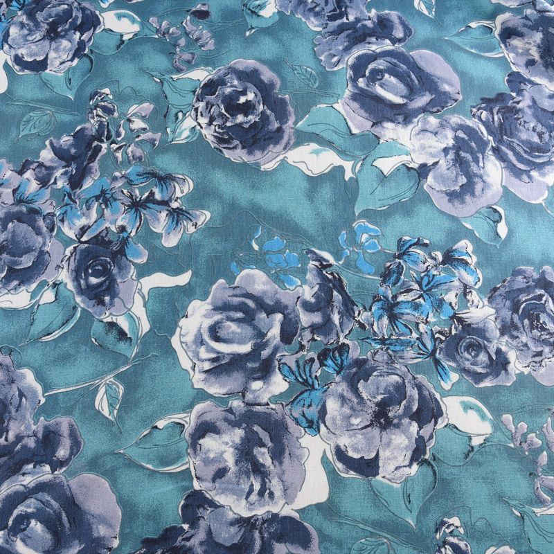 Лен натуральный 035-11767 темно-бирюзовый принтованный