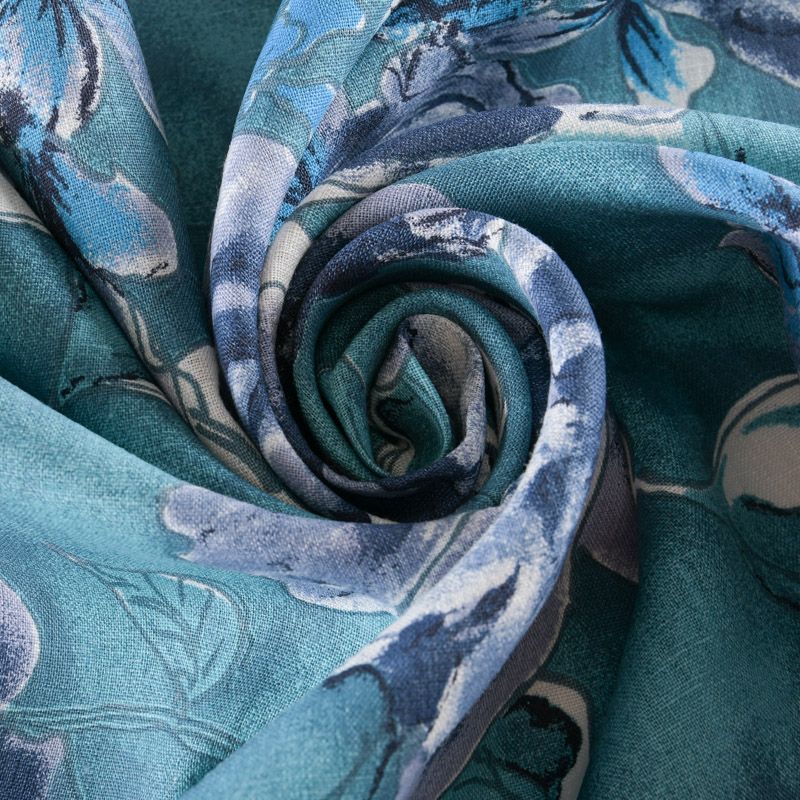 Лен натуральный 035-11767 темно-бирюзовый принтованный в Норильске