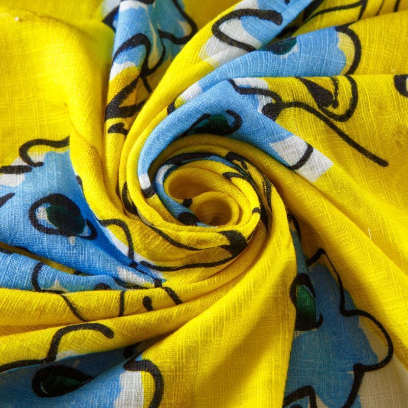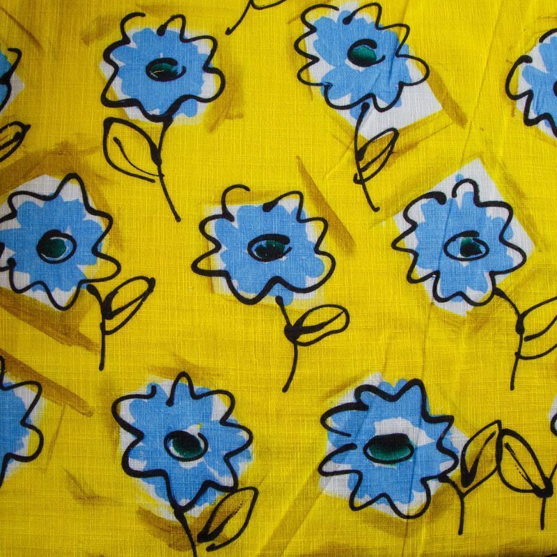 Лен натуральный 035-12588 желтый принтованный