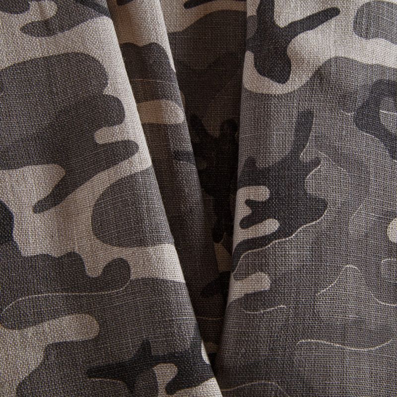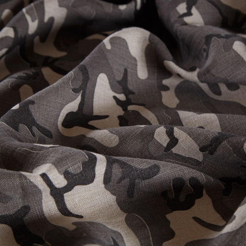 Итальянский костюмно-плательный лен с камуфлированным принтом в серо-бежевых оттенках. Ткань прочная, имеет матовую рельефную поверхность и полотняное переплетение, отлично держит форму, пластичная, комфортная в изделии. Отлично подойдет для пошива для летних костюмов, рубашек, туник, платьев, сарафанов, юбок, жакетов, брюк или шорт.