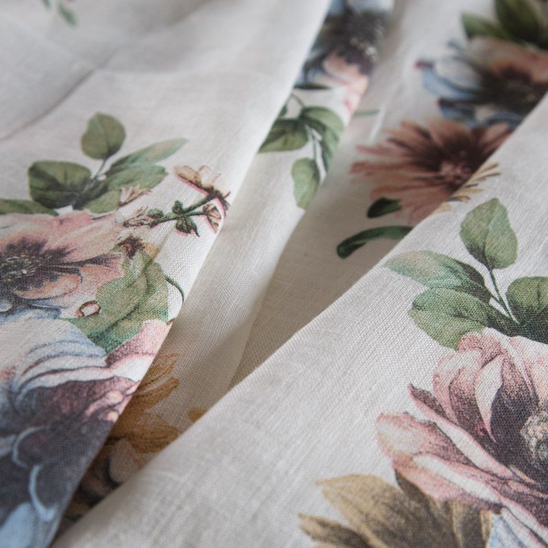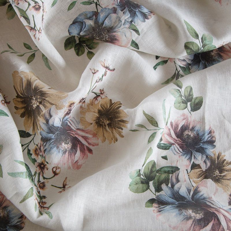 Лен натуральный 035-14443 молочный принтованный в Норильске